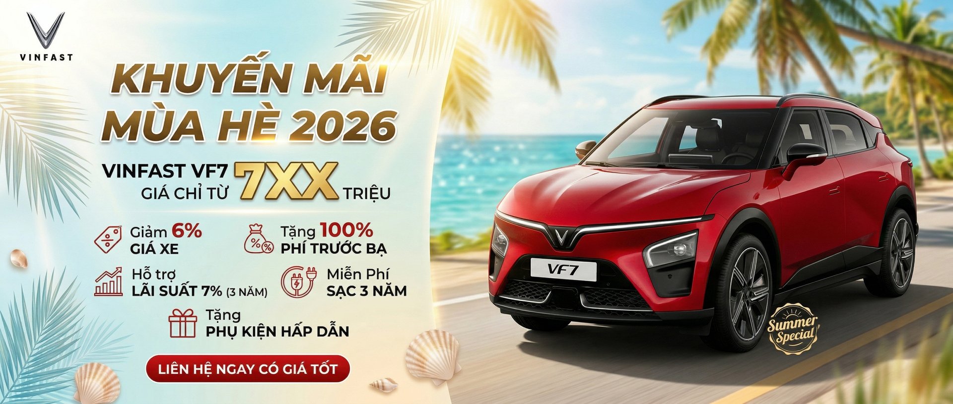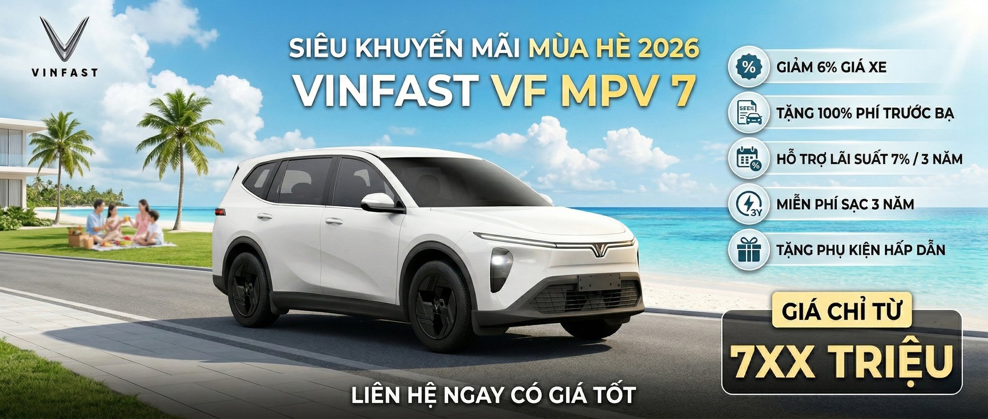 - VINFAST VF7 (Gồm Pin): Giá niêm yết chỉ từ 741 triệu - Ưu đãi ngay trước bạ 0 đồng, Giảm 6% Giá Xe, Tặng 1 Năm Bảo Hiểm Thân Vỏ, Giảm Lãi suất 7% trong 3 năm - Gửi xe miễn phí (dưới 5 tiếng) và ưu tiên đỗ tại mọi địa điểm thuộc hệ sinh thái Vingroup - Sạc pin miễn phí tại các trạm sạc tới hết 10/02/2019 - Hỗ trợ trả góp lên tới 80% giá trị xe, lãi suất ưu đãi - Liên hệ trực tiếp để có GIÁ ƯU ĐÃI TỐT NHẤT
